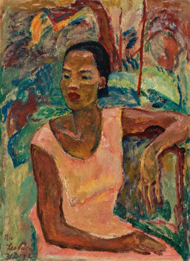 Gemalt von Leo Putz am 31. Dezember 1929 ist dies wohl eines der interessantesten Gemälde dieses zwischen Impressionismus und Expressionismus angesiedelten österreichischen Künstlers. Mit den leuchtenden Farben und der Würde der abgebildeten brasilianischen Dame erinnert dieses Gemälde auch an Gauguins Werke.